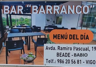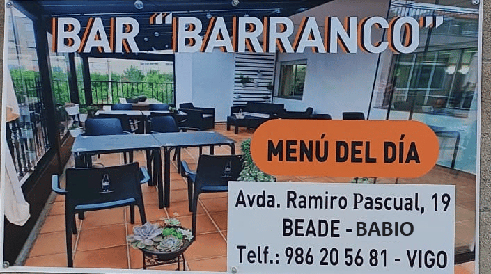 Ramiro Pascual, 19 - BEADE - 36312 - Vigo 986 205 681 Temos menú diario durante a semana e bocadillos. Admítense reservas nas instalacións. Terraza exterior.