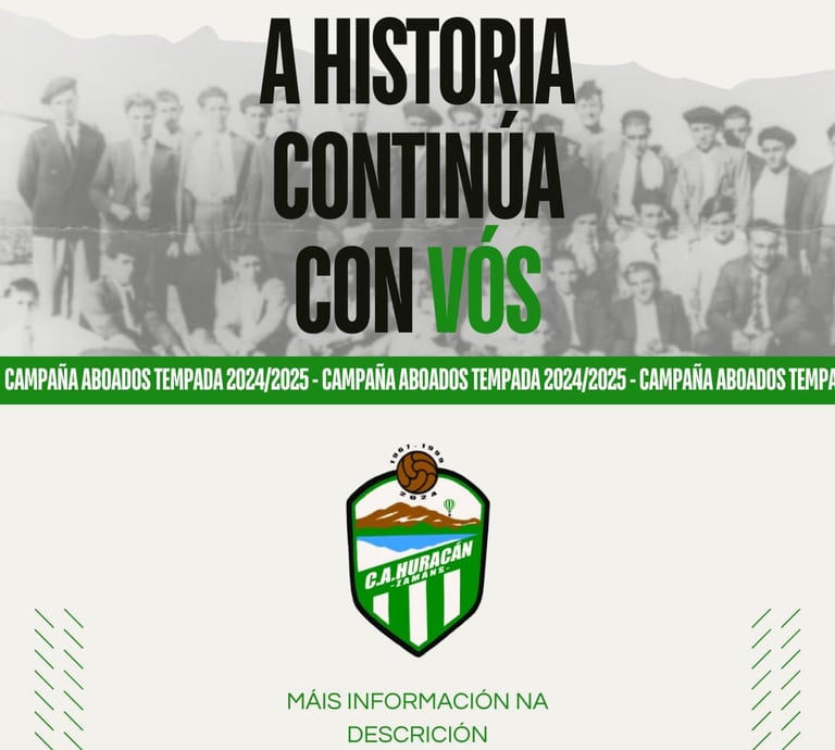 Club Atlético Huracán de Zamáns, queremos anunciar o inicio da campaña de abonados para a tempada 2024/2025.